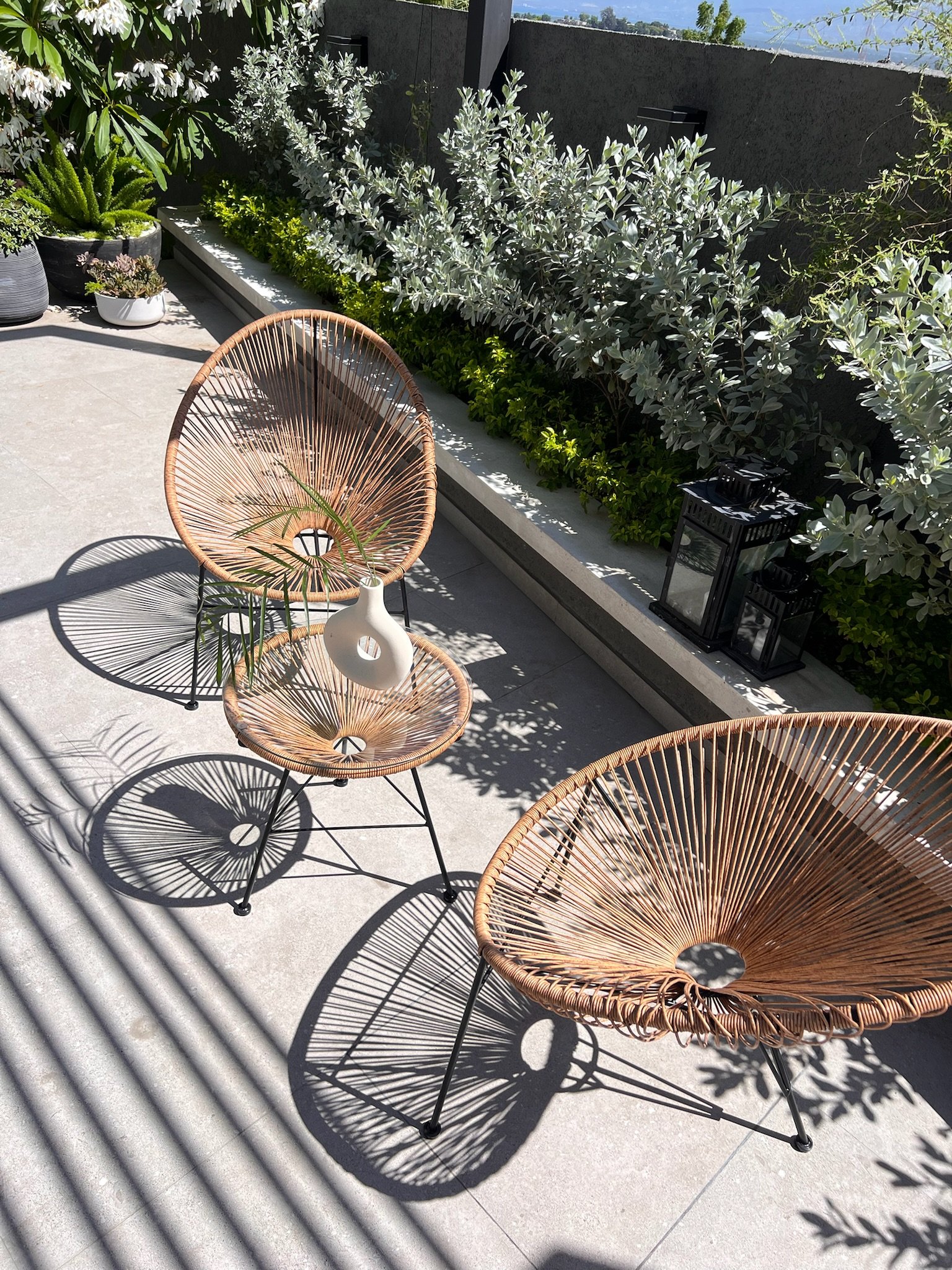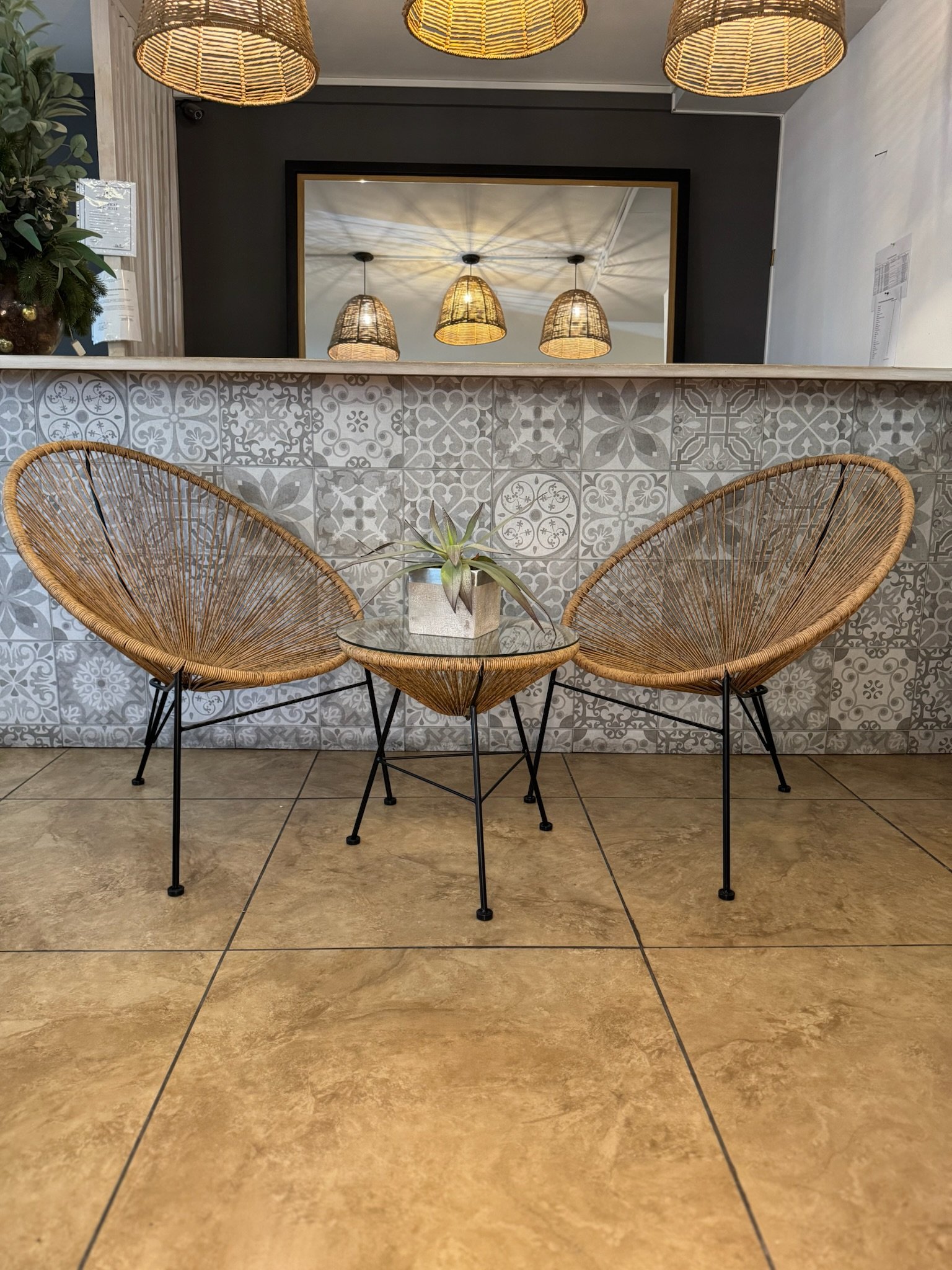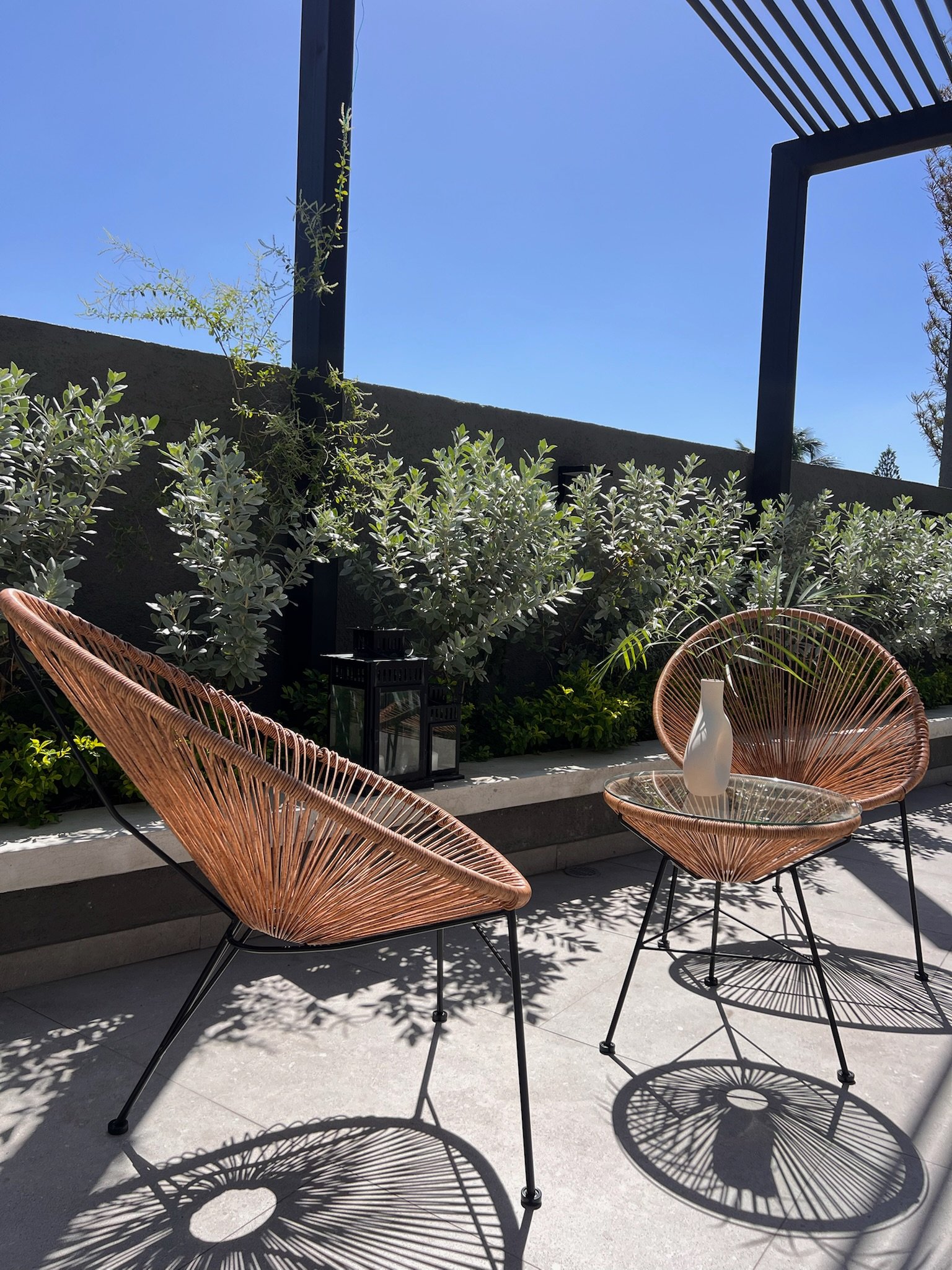 Bring modern charm to your patio or balcony with the Egg Spaghetti Set. This 3-piece ensemble includes a stylish glass-top rattan table and two matching steel-framed chairs. Designed for durability and comfort, it’s perfect for relaxing outdoors or enjoying coffee with friends. Sleek, lightweight, and contemporary — a perfect blend of style and function.