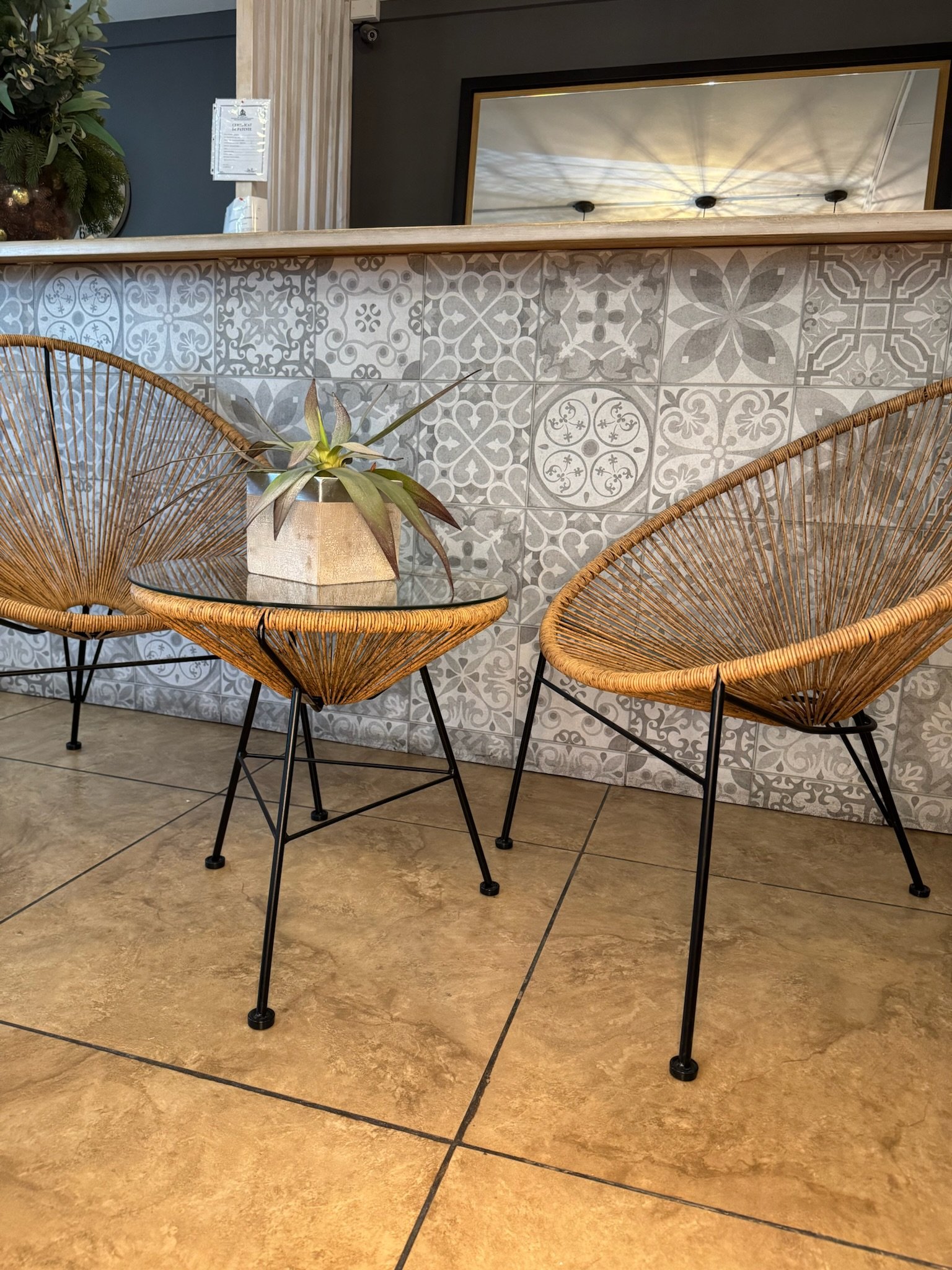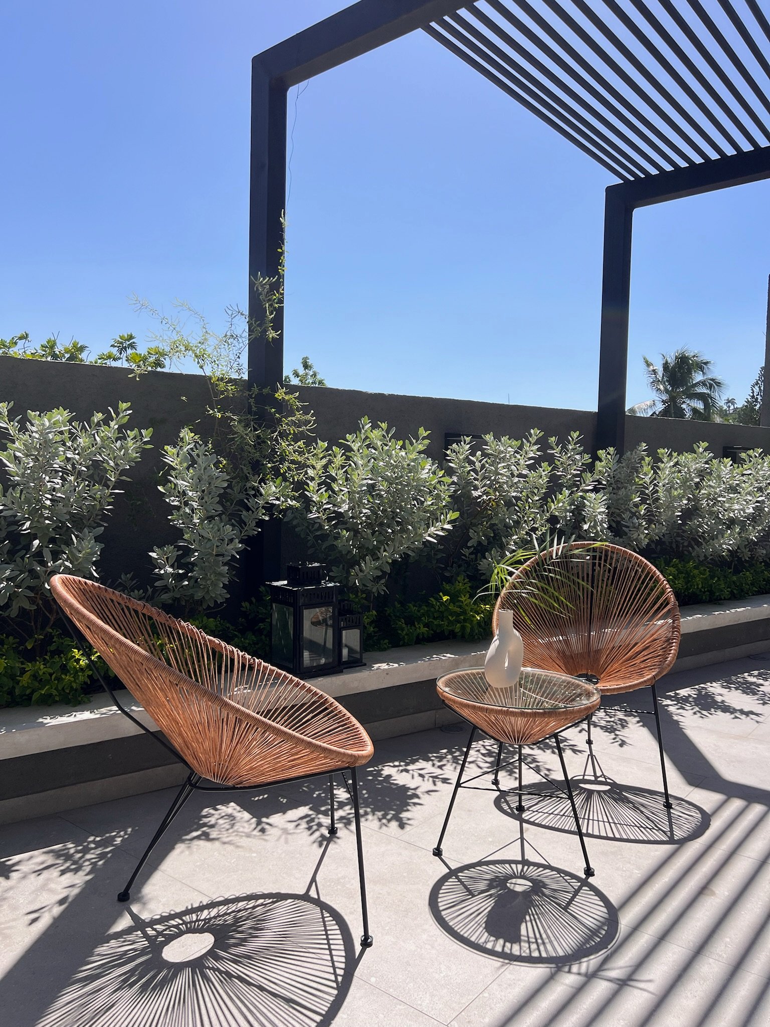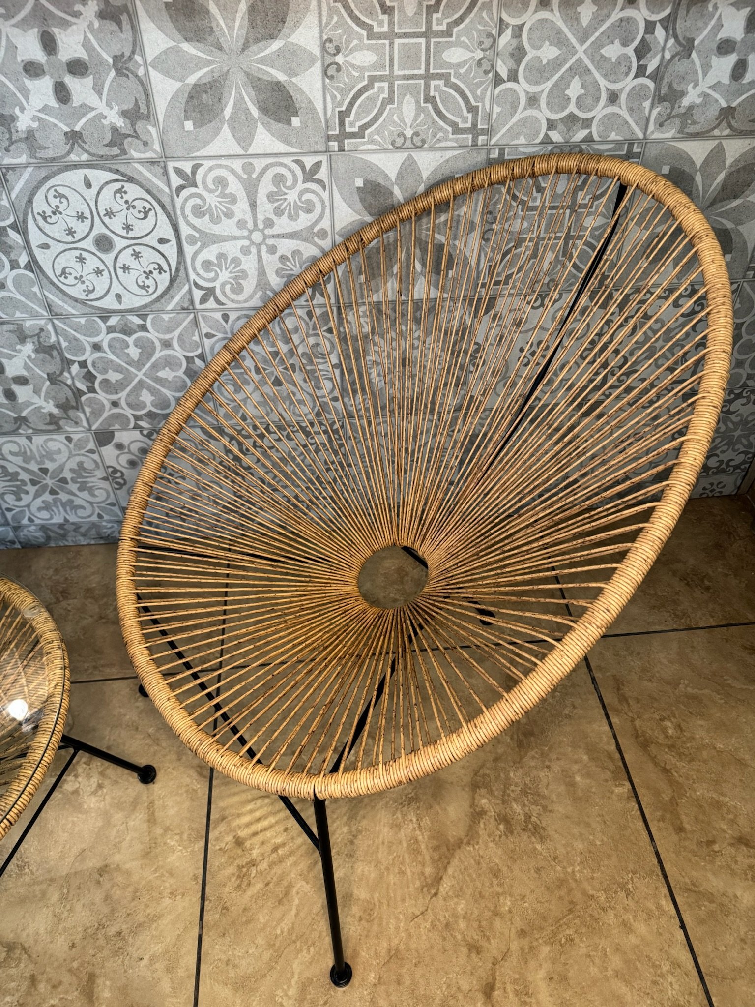 Bring modern charm to your patio or balcony with the Egg Spaghetti Set. This 3-piece ensemble includes a stylish glass-top rattan table and two matching steel-framed chairs. Designed for durability and comfort, it’s perfect for relaxing outdoors or enjoying coffee with friends. Sleek, lightweight, and contemporary — a perfect blend of style and function.