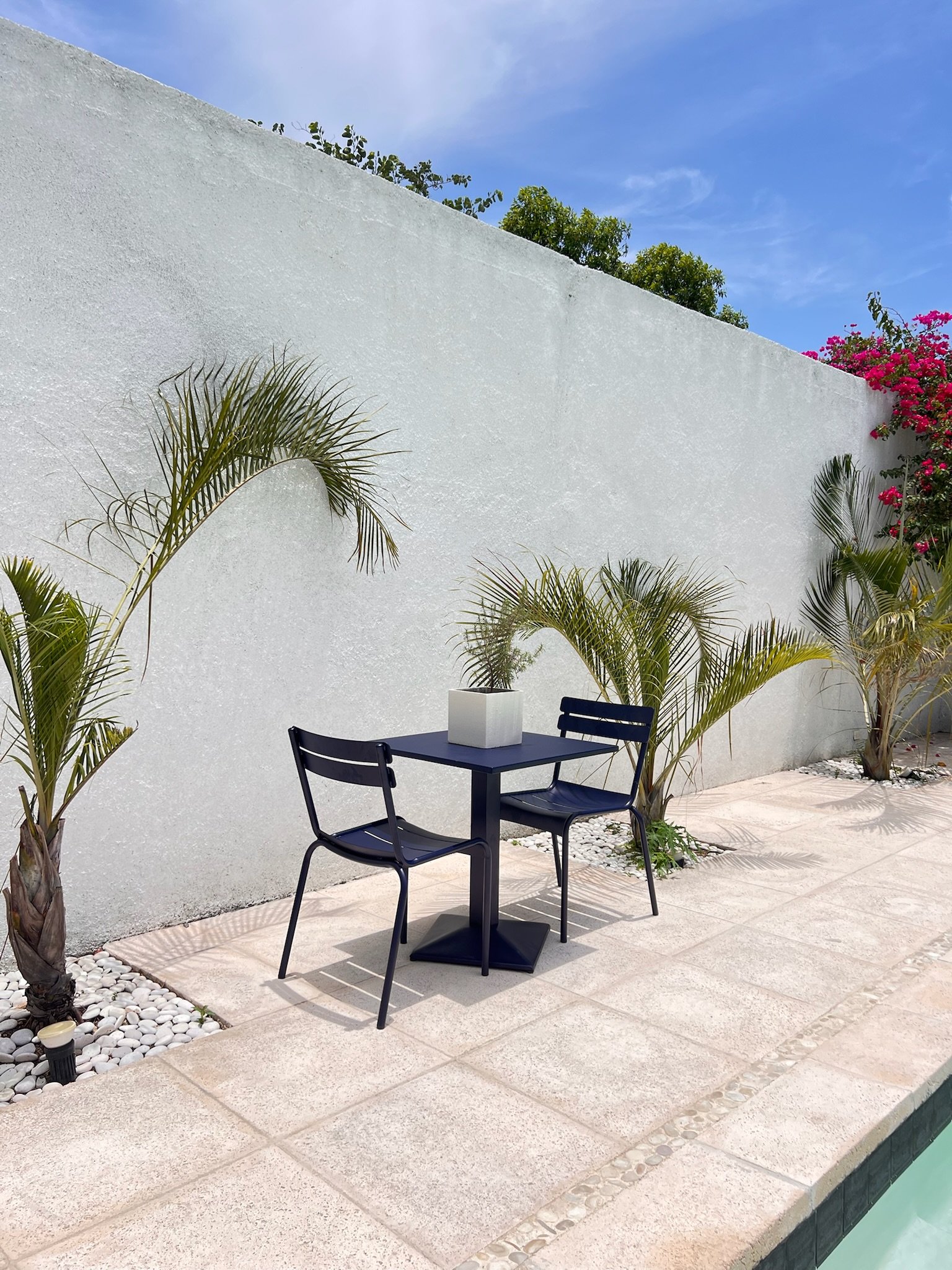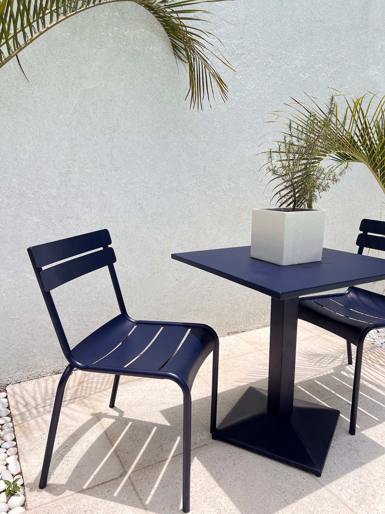 Add modern elegance to your outdoor space with the Tova Navy Blue Set. This 4-piece ensemble includes three stylish black-framed chairs with navy blue seats and one matching square table. Designed for durability and comfort, it’s perfect for casual gatherings or relaxing moments, bringing a refined contemporary touch to any patio or balcony.